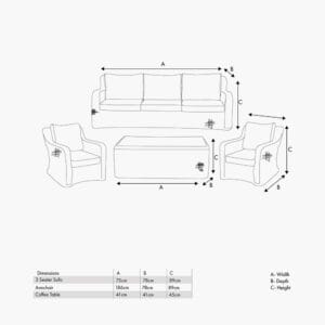 Ibiza 3 Seat Sofa Set With Square Coffee Table - Oatmeal