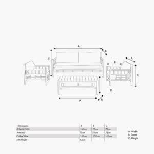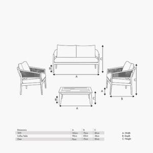 Porto Rope Weave 3 Seat Sofa Set - Sandstone