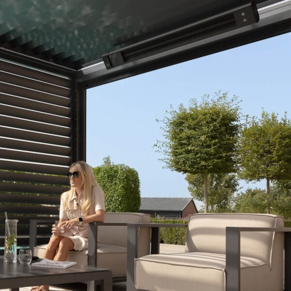 The Eden 240V Pergola Heater is expertly crafted to complement our Eden Pergola collection, offering a sleek and functional addition to your outdoor space.