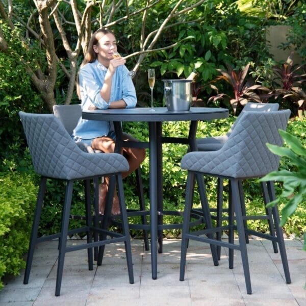 The Regal 4 Seat Round Bar Set is the perfect blend of opulence and masterful design, with quilting on the outside of the stools which simply oozes contemporary design.
