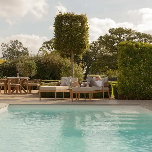 The Porto Double sun lounger set showcases the timeless appeal of FSC acacia wood, both in the round dining table and the accompanying chairs. Over time, this wooden double sun lounger set will gradually transition into a silvery grey hue, enhancing the character of your outdoor furniture. Each piece has been crafted with a PU coating, bolstering the wood’s durability, and requires less maintenance.