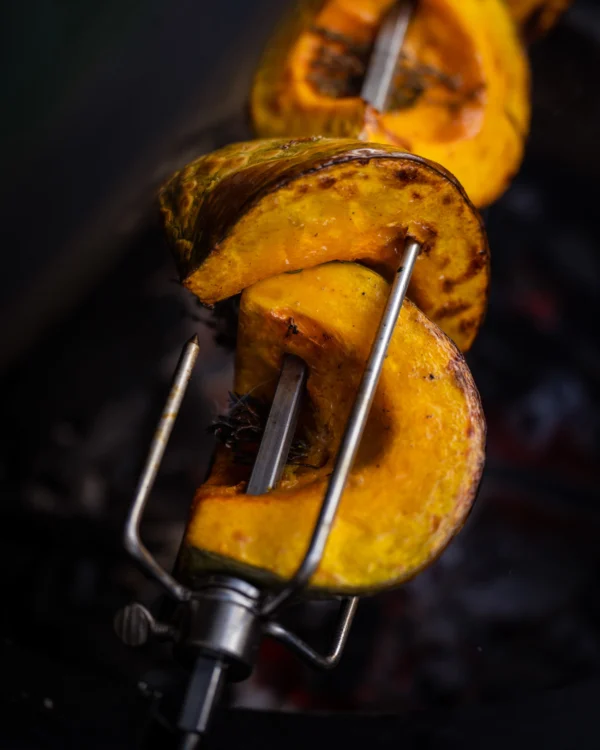 The Rotisserie is available for Large and XL EGGs. It features a powerful but quiet 220V – 240V motor that will consistently and evenly turn food over the flame. A coated steel ring attachment seals the EGG for optimal heat and flavour retention.