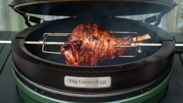 For years now, we’ve been working on – and you’ve been asking for – the development of a Big Green Egg Rotisserie. Now it’s here, and it’s another complete game changer. To the seven familiar cooking modes of the EGG, you can now add an eighth: spit roasting.