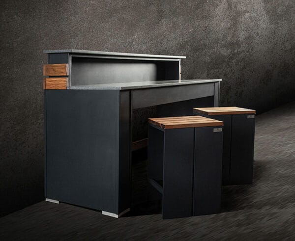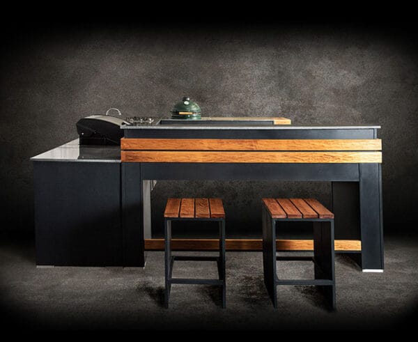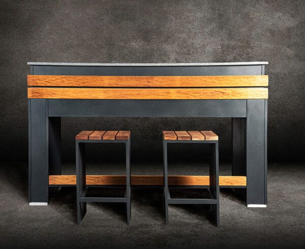 Whether as a standalone feature or as part of a complete kitchen configuration, an outdoor bar can easily make your backyard the best social magnet. Make your backyard the hub of family gatherings and the coolest garden parties. Our bar element has the largest usable work surface where you can comfortably enjoy your favourite food and drinks. This module also comes with two bar stools, complete with a beautiful and timeless thermo-wood seating surface to get the perfect harmony.