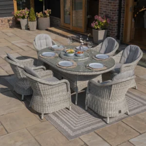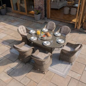 Winchester 6 Seat Oval Dining Set with Heritage Dining Chairs & Woven Lazy Susan